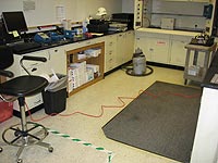 Routine maintenance in the laboratory must be improved. Chemicals and equipment that are not in use must be properly stored or disposed of. Walkways, benches, and active workspaces must free from obstructions. Ongoing experiments must be organized, labeled, and contained, leaving ample workspace for safe work practices.
