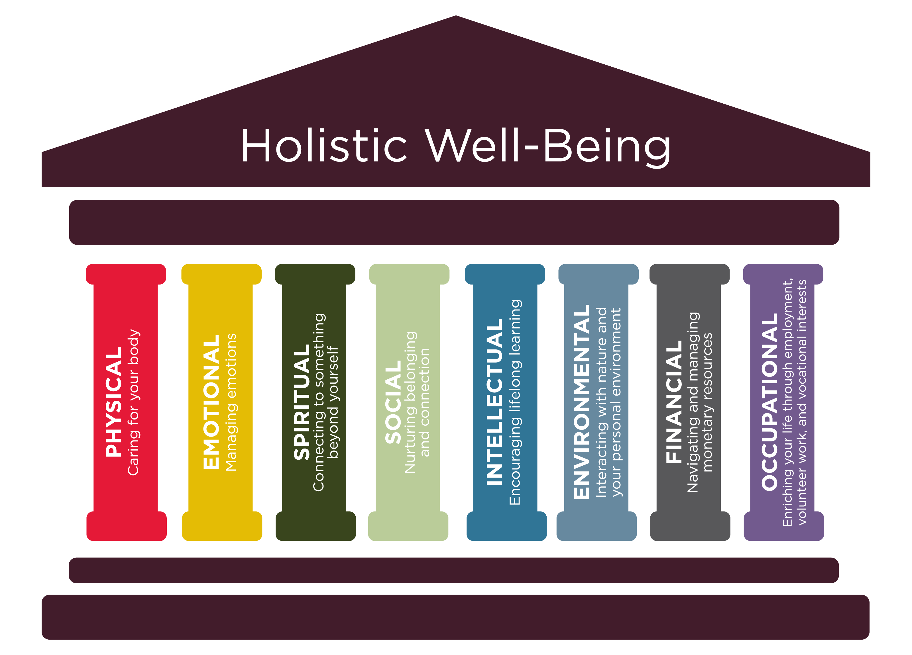 The following is a list of resources for eight dimensions of wellness. For each dimension, you will find descriptions and links to UMB resources. Feel free to contact us if you know of other resources we should add to the list.