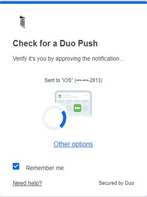 The first time you approve the Duo authentication request, you'll see the option to remember your device.