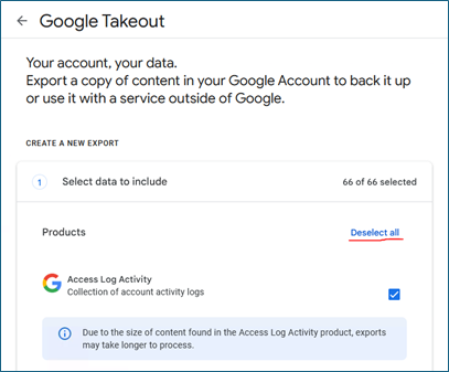 - Go to the Google Takeout page here: https://takeout.google.com