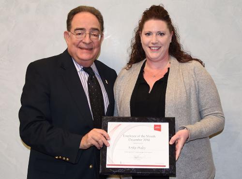 “Your colleagues have said a lot of great things about you,” said Perman, who gave Pixley a plaque, a letter of commendation, and news that an extra $250 would be in her next paycheck. “You’ve helped to build up a whole new program and you serve the students exceptionally well. This award is well-deserved, and on behalf of the University, I want you to know that your work is very much appreciated.”