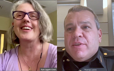 Baltimore City Police Commissioner Richard Worley talks with the UMB community about the city’s success in reducing violent crime with a community-focused approach.